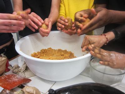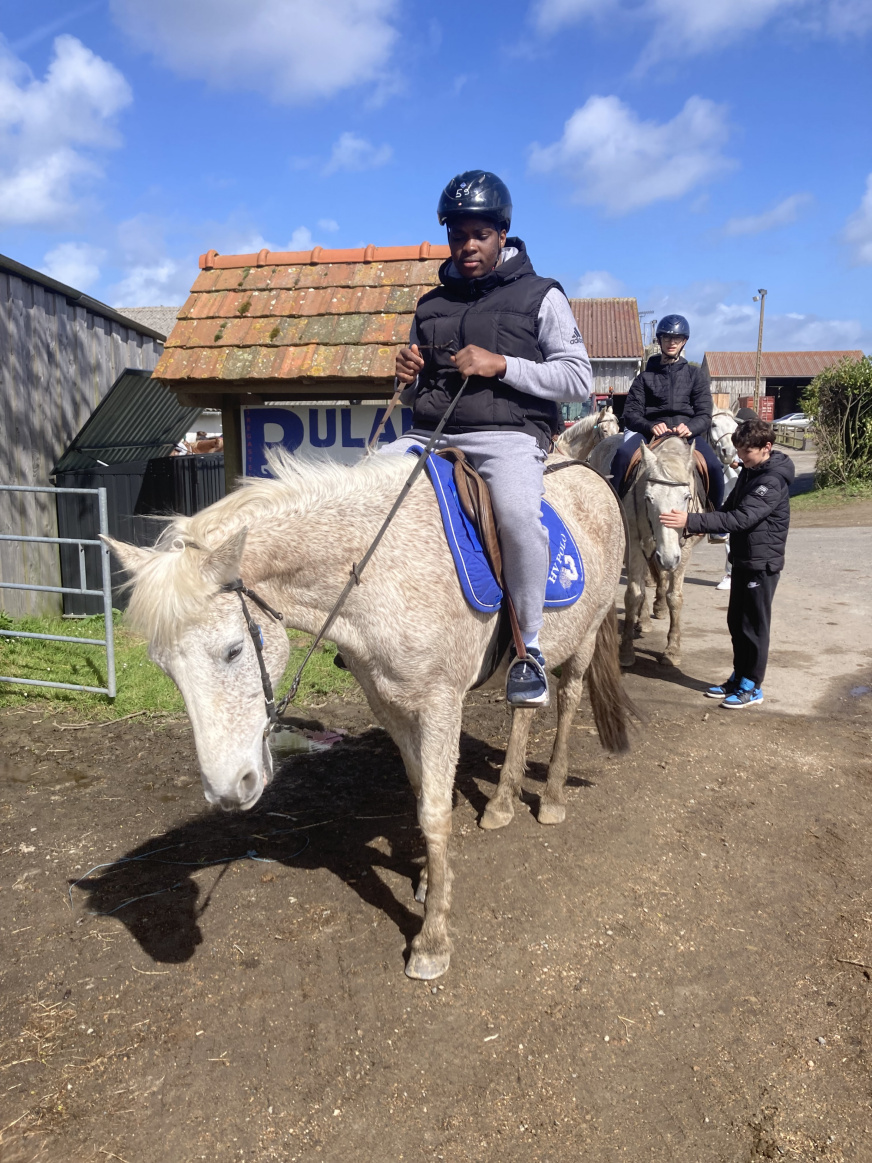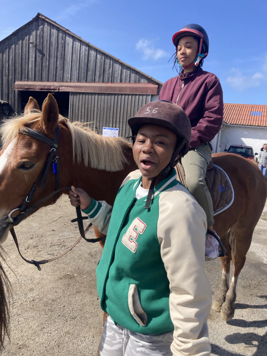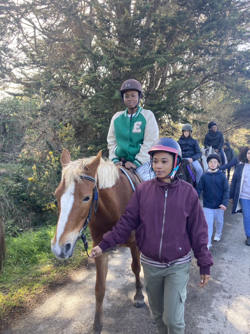 Nous avons rejoint notre hébergement en car. Nous logions dans un centre équestre et c’était très confortable. Le premier jour, il y avait deux groupes pour les activités de l’après-midi. Pendant qu’un groupe montait à cheval, l’autre groupe participait à un atelier de découverte des sons. Avec des éléments de la nature, nous avons appris à produire des sons.