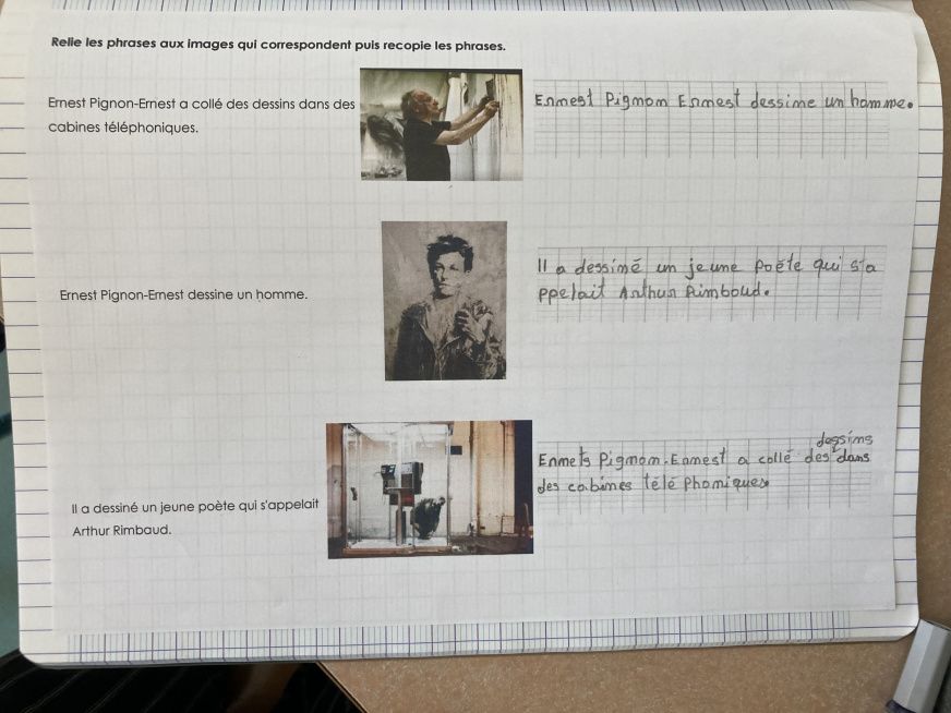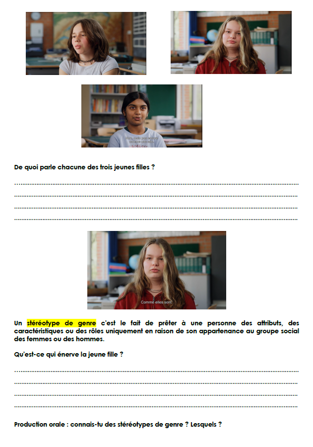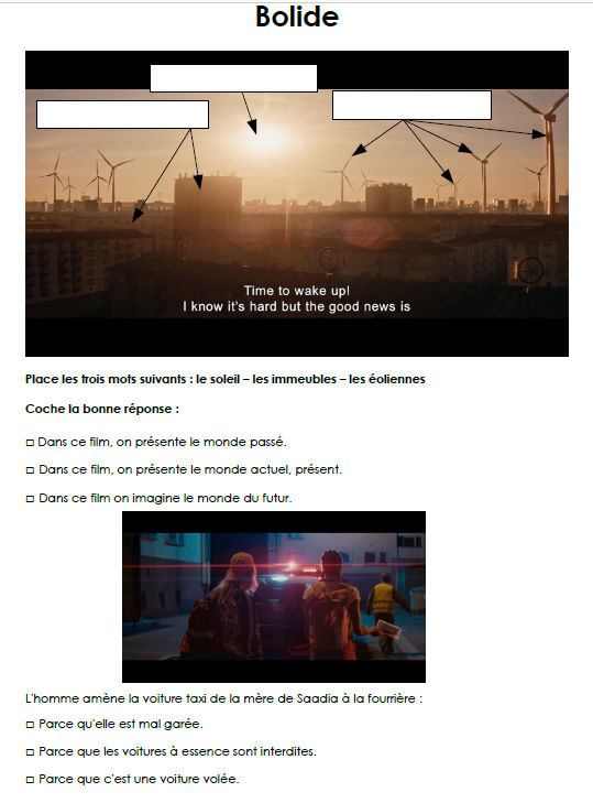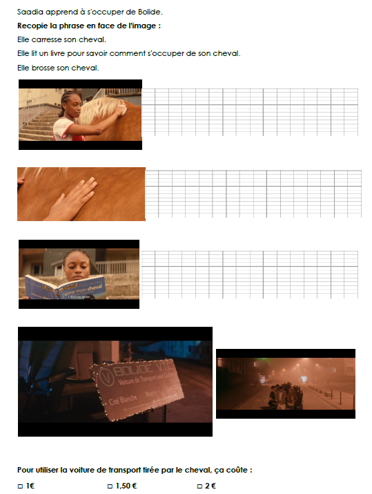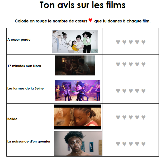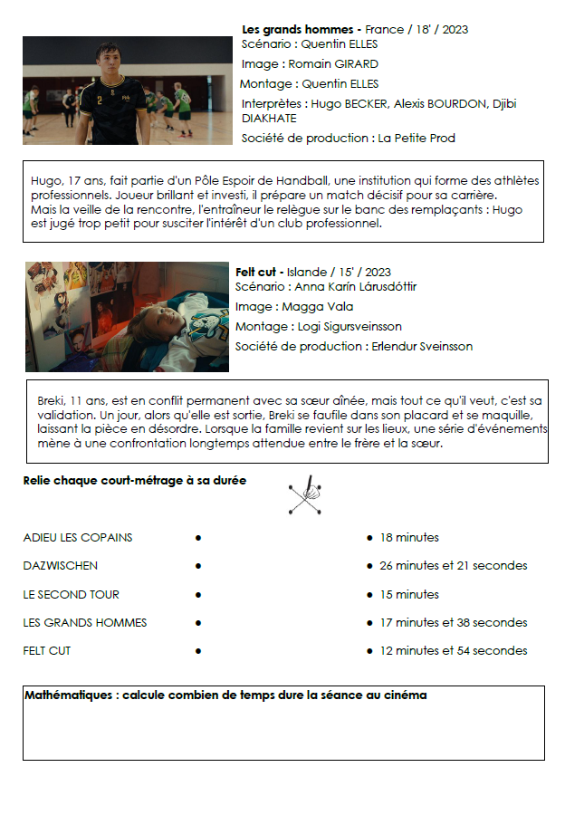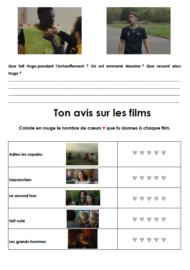 Ensuite, en classe, on a travaillé, on a fait des activités sur les films : de l’écriture, de la lecture… On a parlé des films.