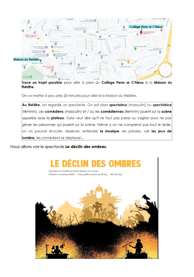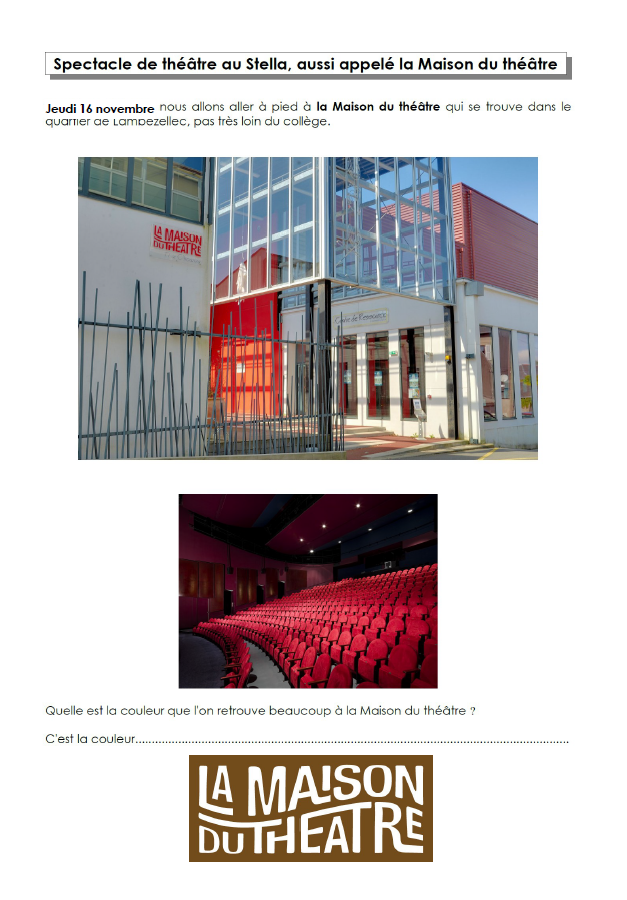 Le jeudi 16 novembre, nous sommes allés à la Maison du théâtre voir un spectacle. La Maison du théâtre est une salle de spectacle qui n’est pas très loin du collège : elle se trouve dans le quartier de Lambézellec. Nous avons vu un spectacle qui s’appelle Le déclin des ombres.