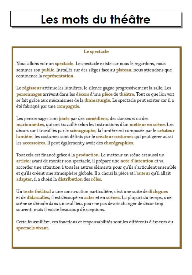 Avant d’aller au théâtre, nous avons travaillé en classe.
