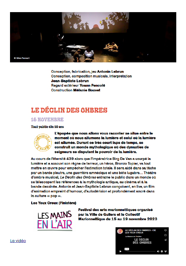 Spectacle Le déclin des ombres à la Maison du théâtre