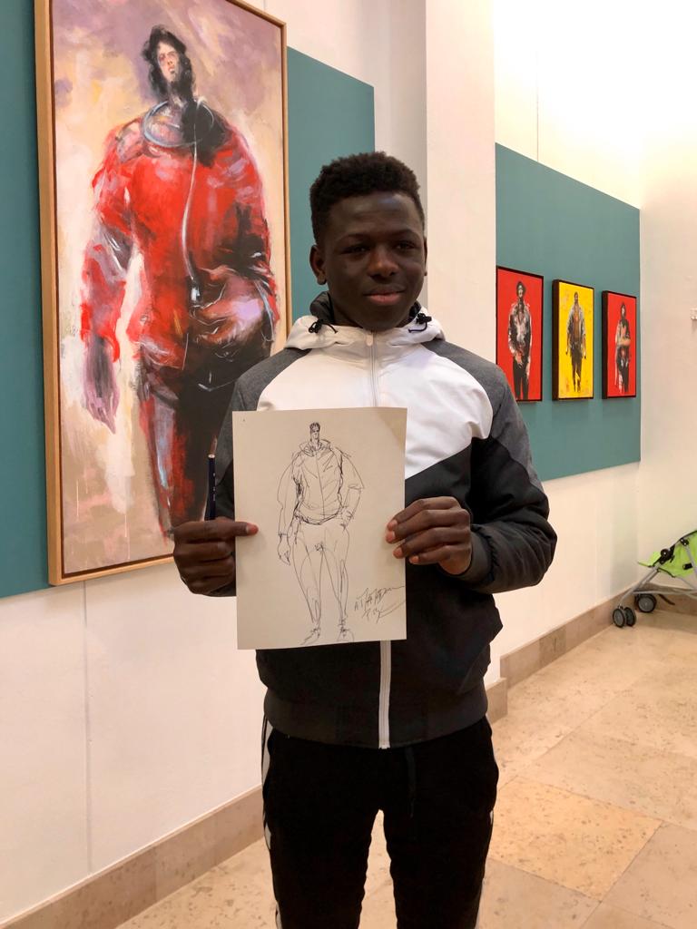 Nous lui avons posé des questions sur son travail et nous lui avons demandé combien de temps il mettait pour peindre un géant. Il nous alors proposé de nous dessiner et nous étions contentes.