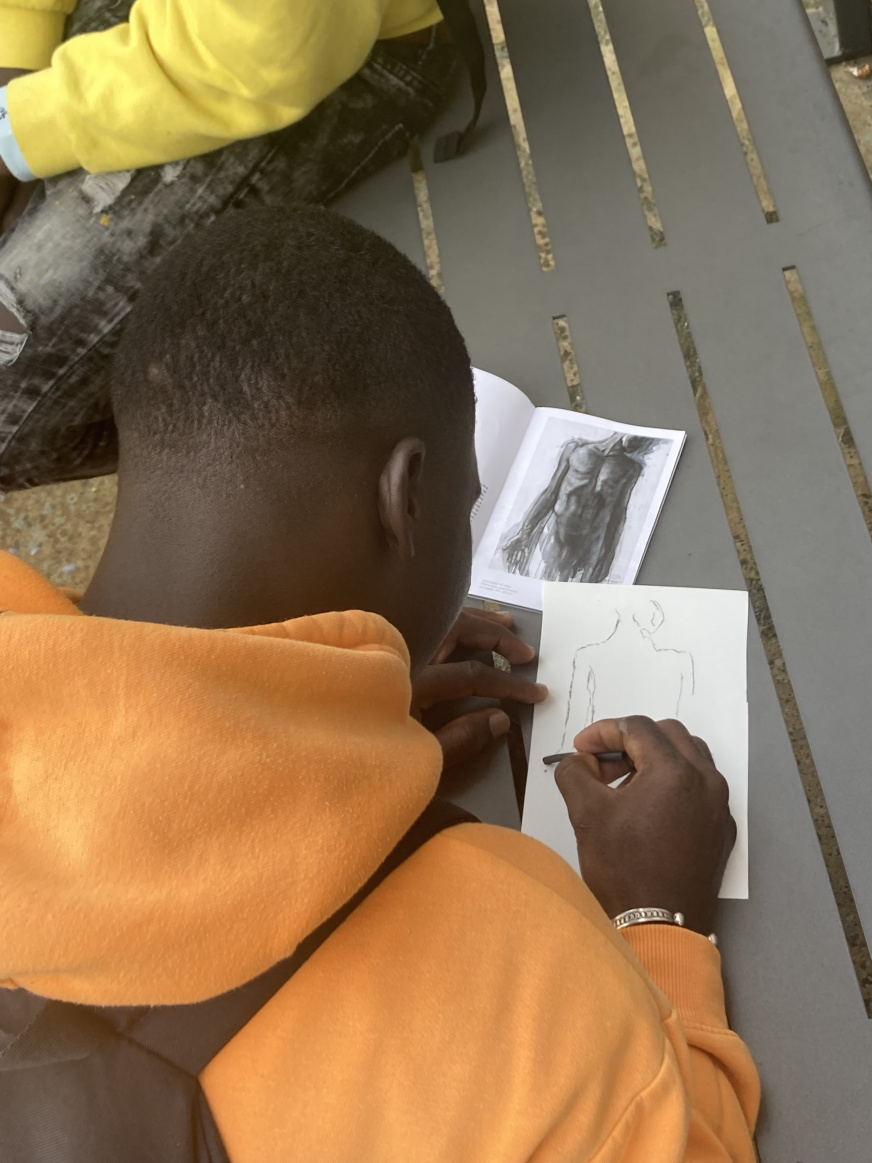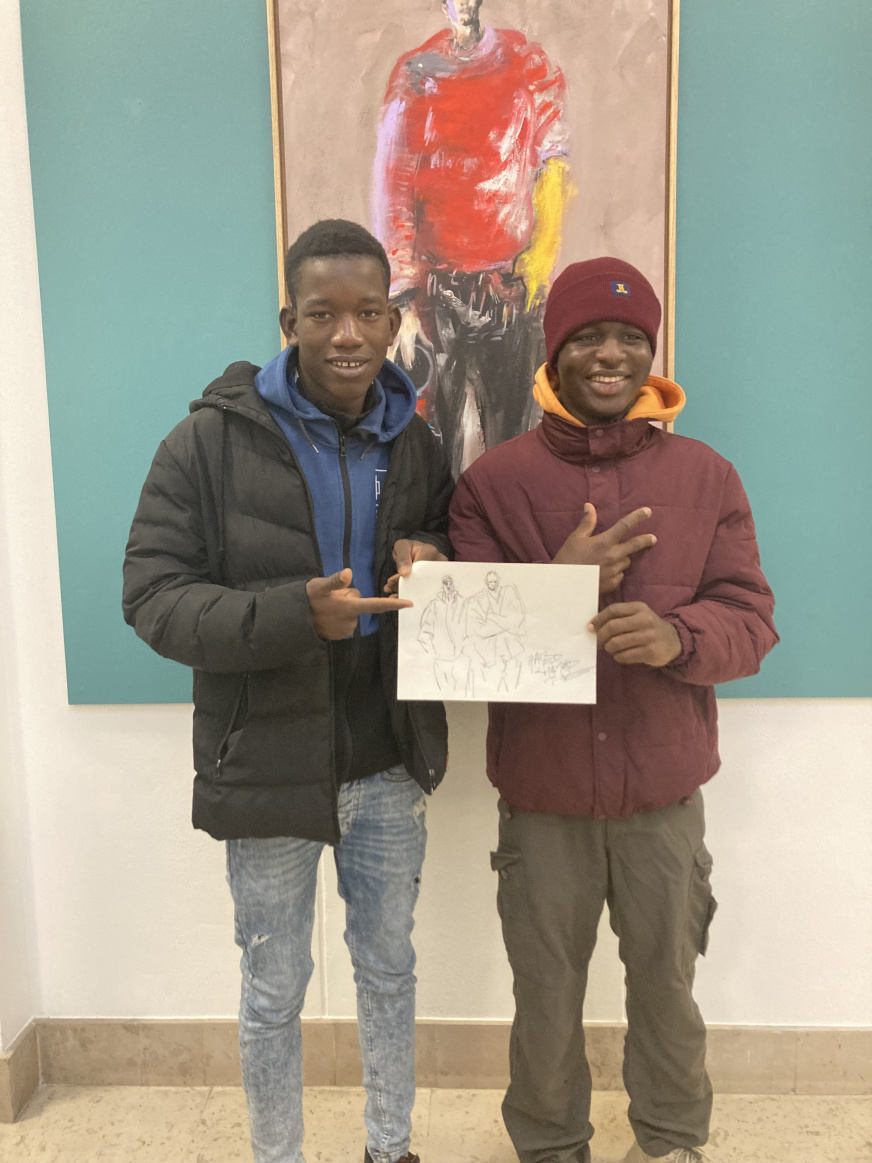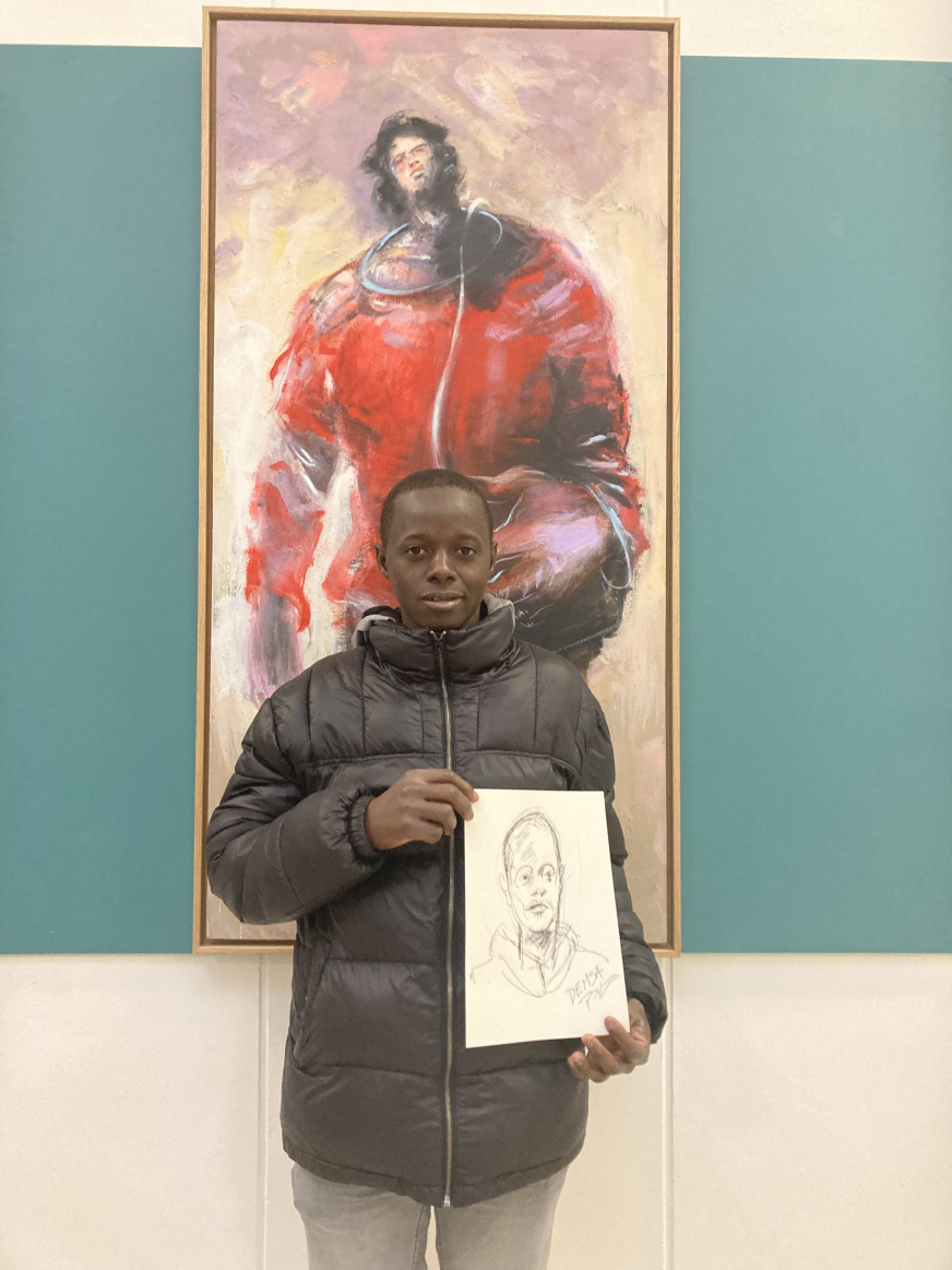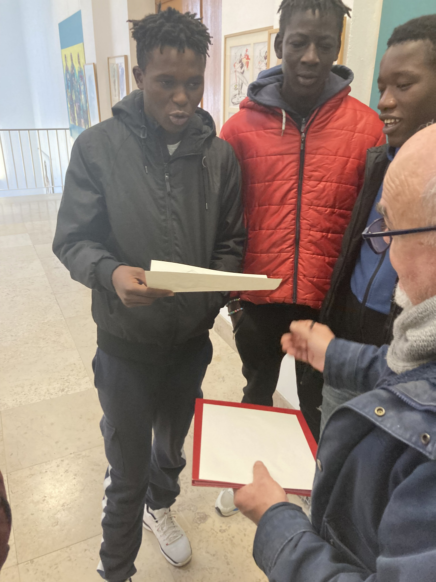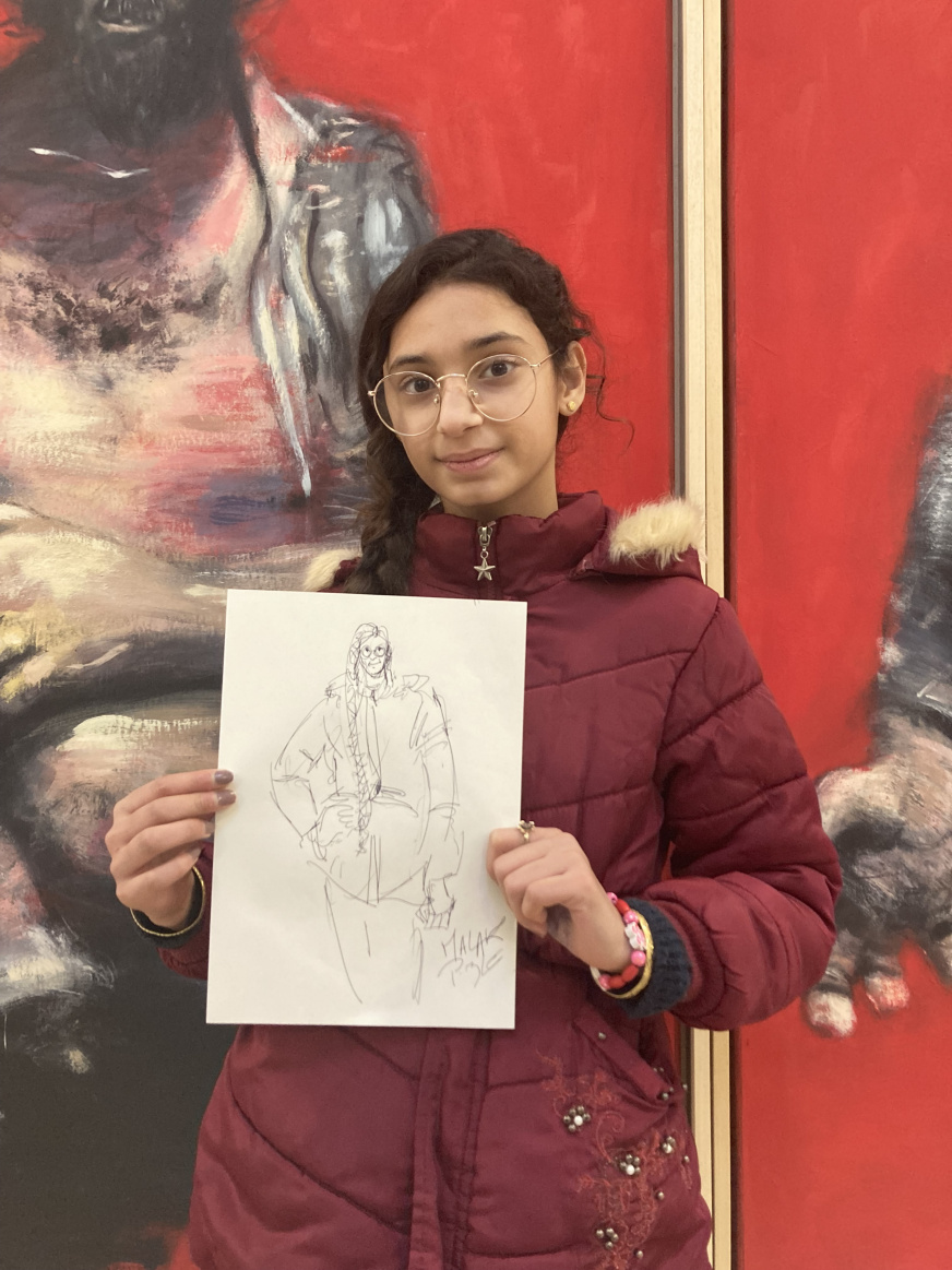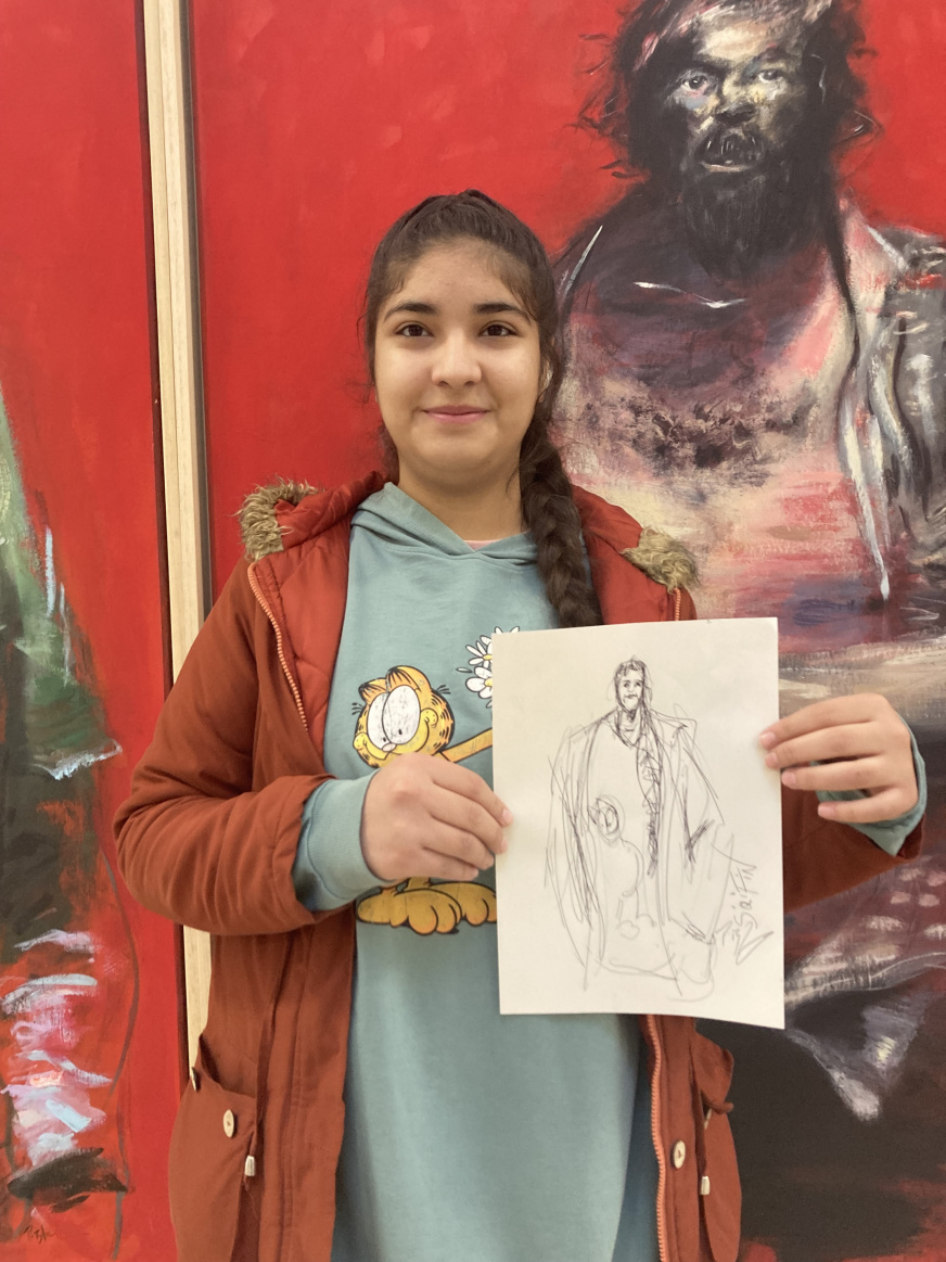 Ensuite, nous avons vu les dessins d’Ernest-Pignon-Ernest. Une personne du musée nous a guidés dans la visite et elle nous a expliqué plein de choses. On a pu lui poser des questions. Hamed a demandé pourquoi la plupart des dessins montraient des choses tristes. Elle nous a expliqué que l’artiste s’engage à travers ses dessins. Il montre le monde tel qu’il est et le monde n’est pas parfait.