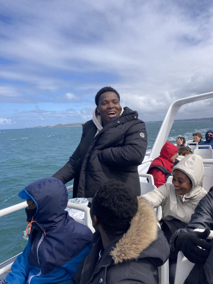 L’après-midi, on est allé prendre un bateau pour découvrir la réserve ornithologique des Sept Îles. C’était incroyable ! La mer était très agitée. Ca faisait un peu peur mais au début on rigolait. Après, certains d’entre nous dormaient parce qu’ils étaient un peu malades. On a vu des oiseaux rares et les personnes de la Ligue de Protection des Oiseaux nous ont raconté plein d’anecdotes sur les oiseaux et nous ont prêté leurs jumelles pour bien observer.