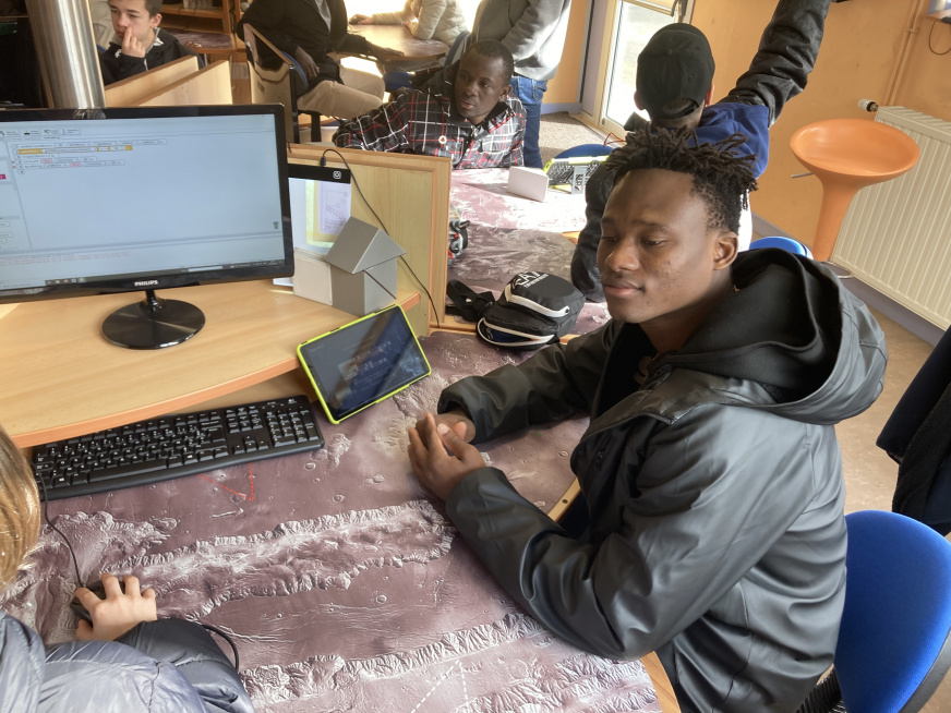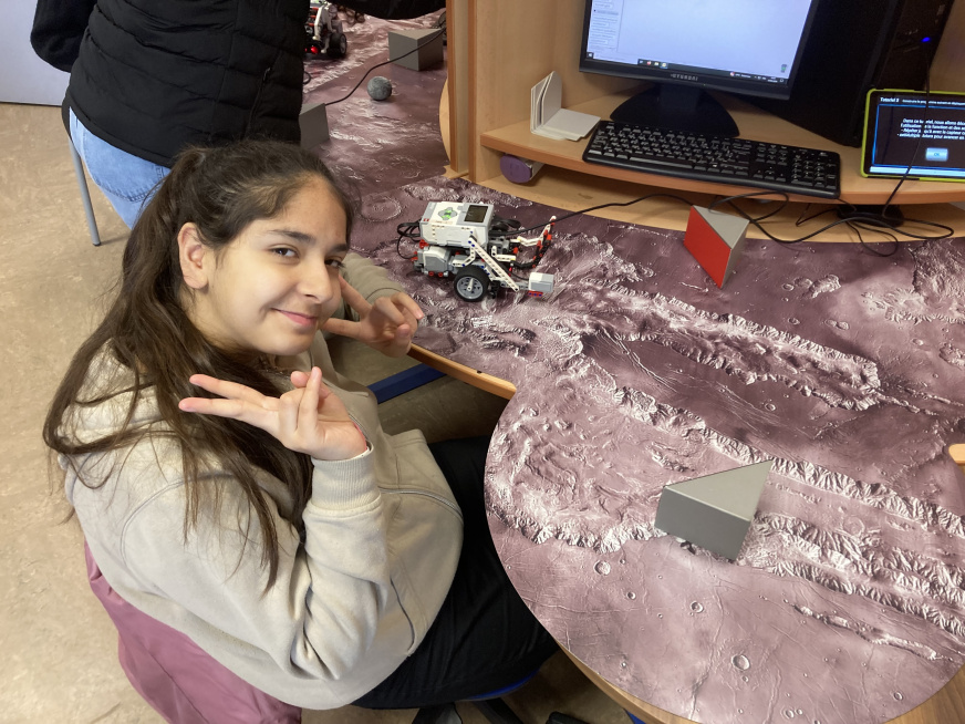 Le mardi matin, on est allé à la Cité des Télécoms. Un groupe faisait de la programmation de robots et l’autre groupe faisait un atelier sur les satellites. Ensuite on a changé. C’était intéressant.