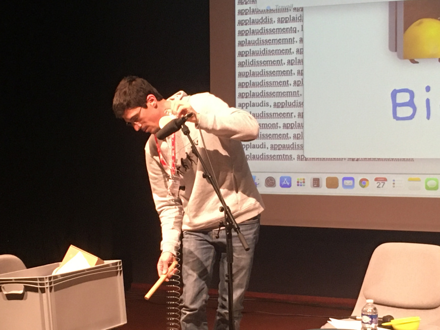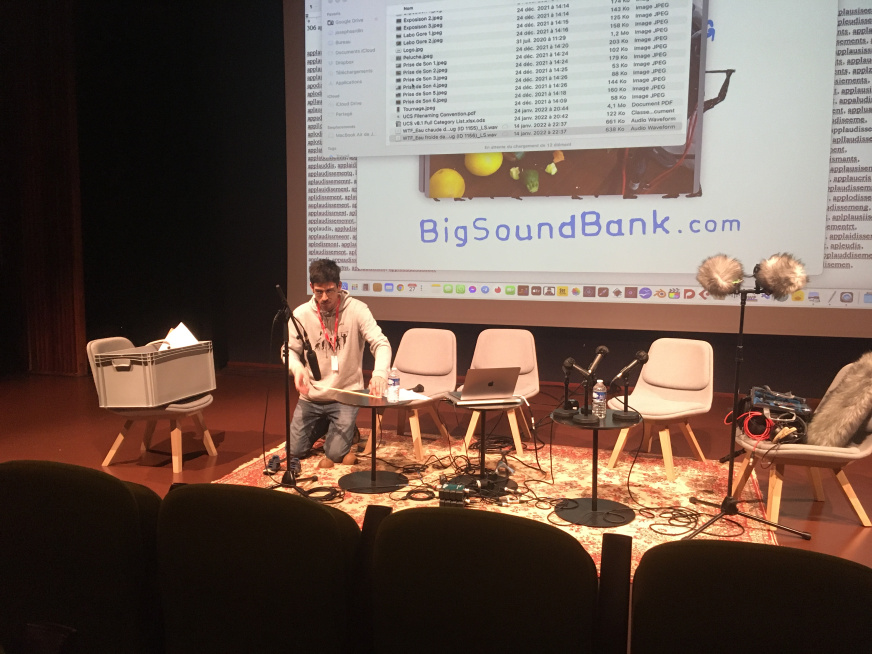 Dans le cadre du Festival des scolaires, nous sommes allés à l’auditorium des Capucins rencontrer Joseph Sardin, bruiteur professionnel, qui a fondé en 2005 la Sonothèque, une bibliothèque en ligne de bruitages et ambiances libres de droit.